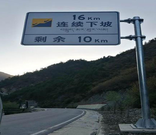 交通标志杆一般有单杆式交通标志杆、多杆式交通标志杆。立柱标志内侧边缘不得侵入道路施工边界。